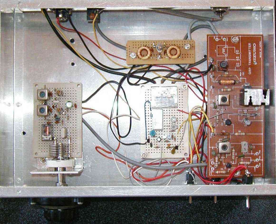 実はこのバージョン以前にバラバラバージョンと言うのがあって、文字通りばらばら、VXO部とTX部に分かれ、更にブレークイン回路はまだありませんでした。 その為、スナップスイッチを2個切り替えやっと送受信の切り替えというありさま。 とても実用には耐えず、約10QSOで作り直しと相成りました。
